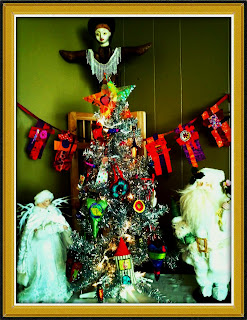 I put up two trees that vary from year to year. Above are this years' versions. For more on my decorating go to my blog: Plethora of Color at: http://www.lenall.blogspot.com/